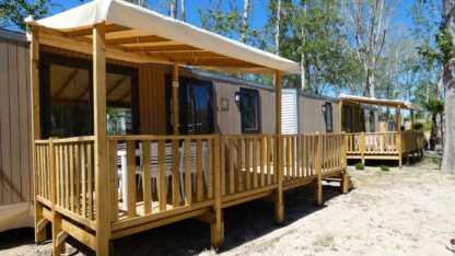 Les Vagues: Een vakantiepark in Vendres-Plage, Occitanie, Frankrijk. Vanaf je veranda van je cottage kijk je naar de kinderen die lekker luieren in de hangmat onder de kokospalmen. Te midden van de wuivende palmbomen heb je het gevoel dat je op de Caraïben zit.